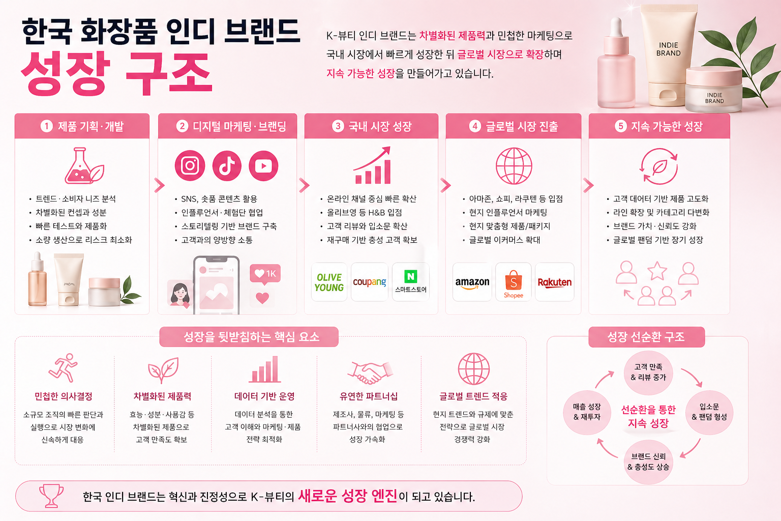 - 비건, 저자극, 기능성 성분 등 트렌드 특화 제품군 빠른 출시